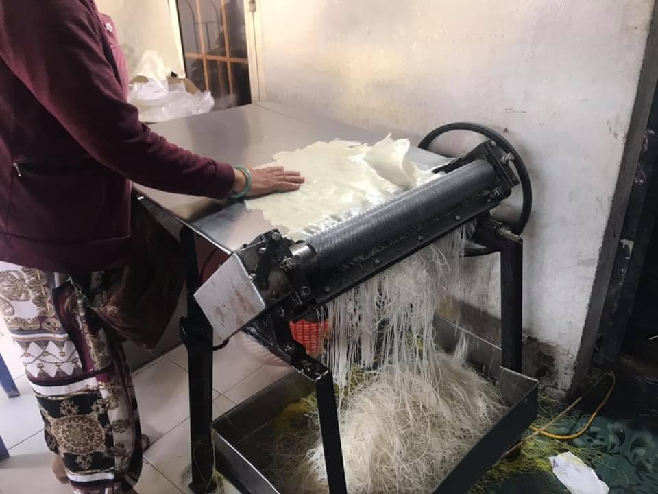 Rice paper making: One of the most typical food from rice steamed and processed into round piece dried in the sun on the bamboo brackets that are on sale in the inns or shops.