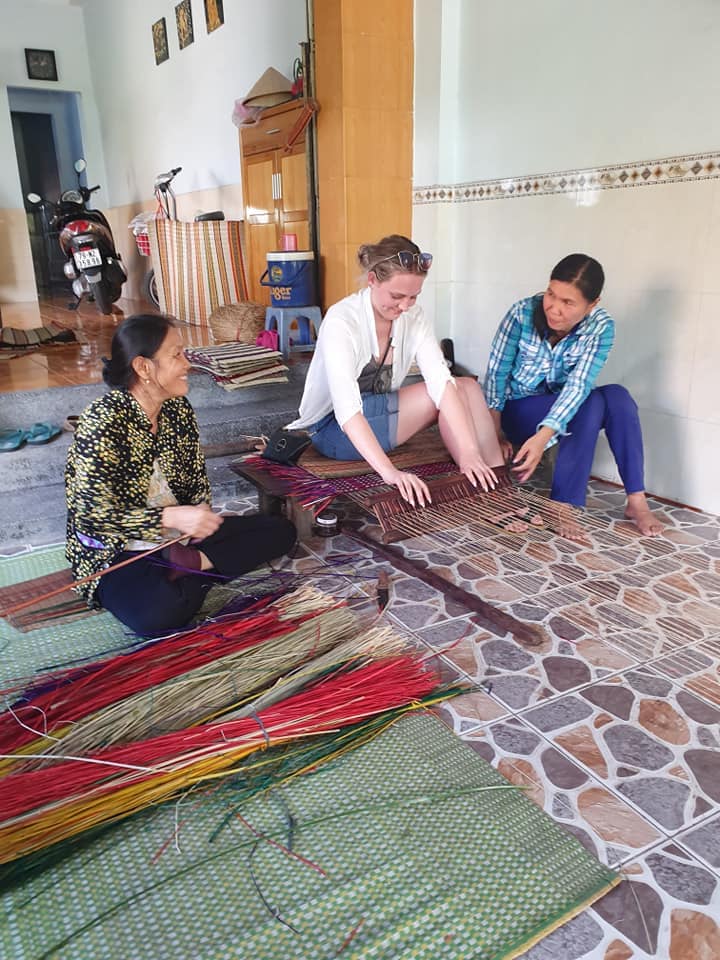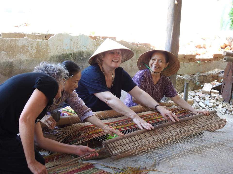 The first stop of the tour is an embroidery factory . Driving through miles of flat rice fields to a rural village, enjoy the opportunity to interact with the local people as they go about their daily lives, with farming and cottage industries as their primary source of income. The village path leads us to the home of one family who weave mats from rushes which grow abundantly in the surrounding area. Two people working together will weave just four mats in a day, which will be taken to the local market and traded for food and other essentials.