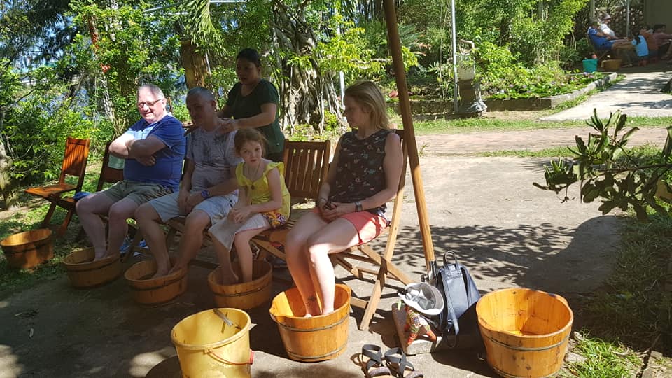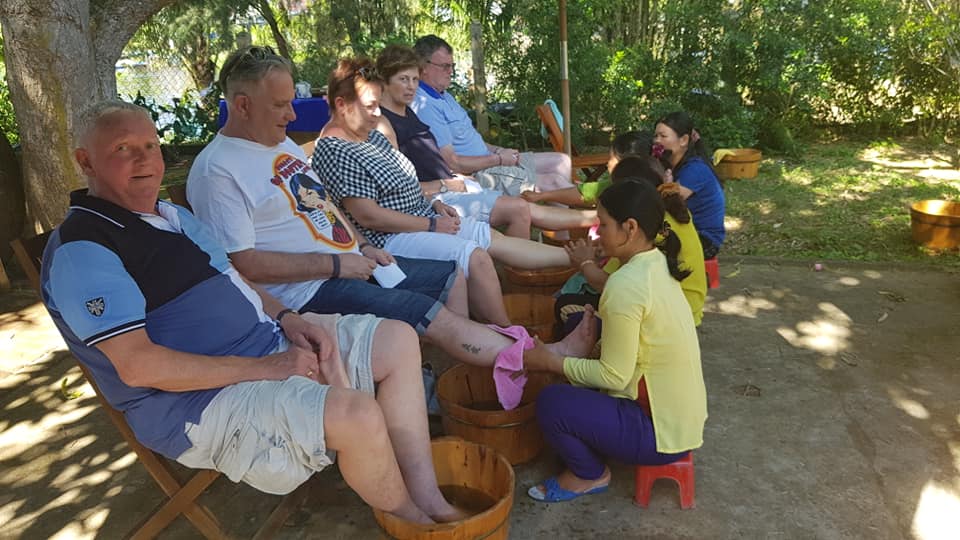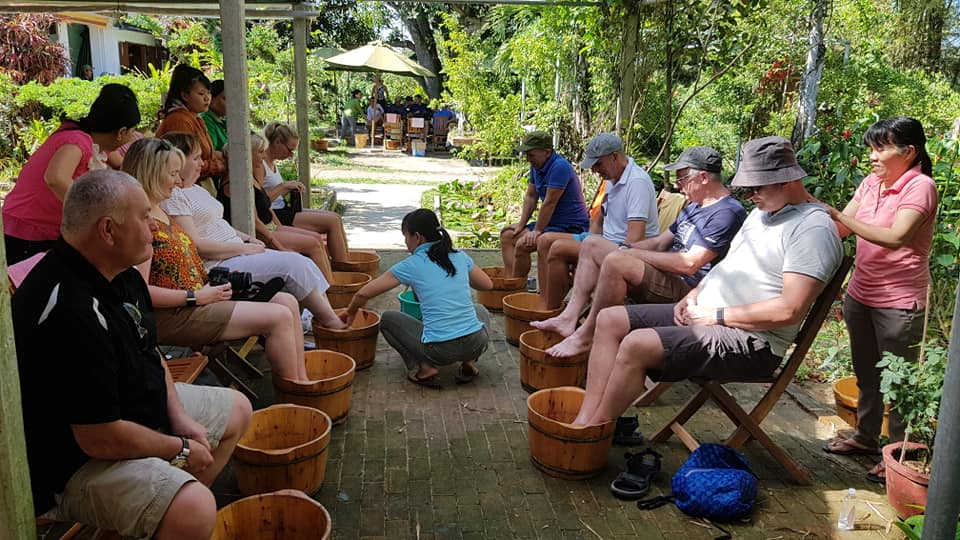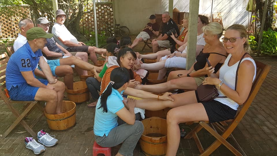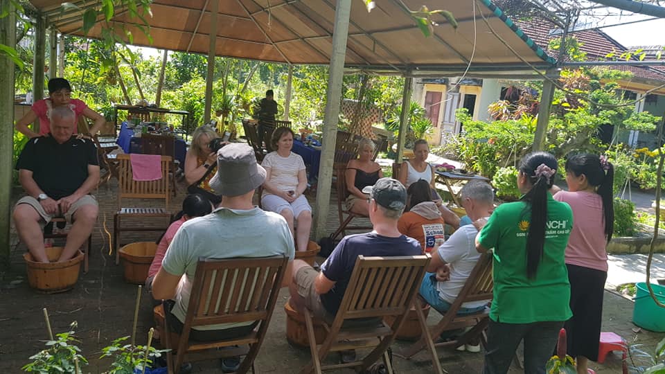 Next, We go to Cam Thanh Village. You will be Warmly welcomed by a local family of 3 generations with green tea. Then enjoy rowing a basket boat with the help of skillful local people, learning their traditional fishing techniques in the water coconut forest to explore and fish for crabs, Learn how to throw the big fishing net – very interesting… the local staff will make the watches, fish, grasshoppers from coconut leaves to give you as souvenirs. Then,We stop at local family restaurant to have lunch with Local Authentic food and take a rest & Relaxed with Herbal Foot massage .