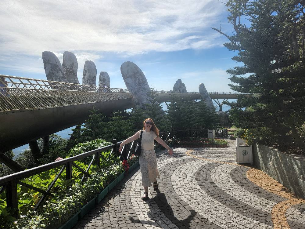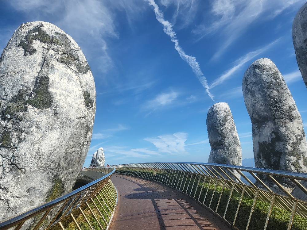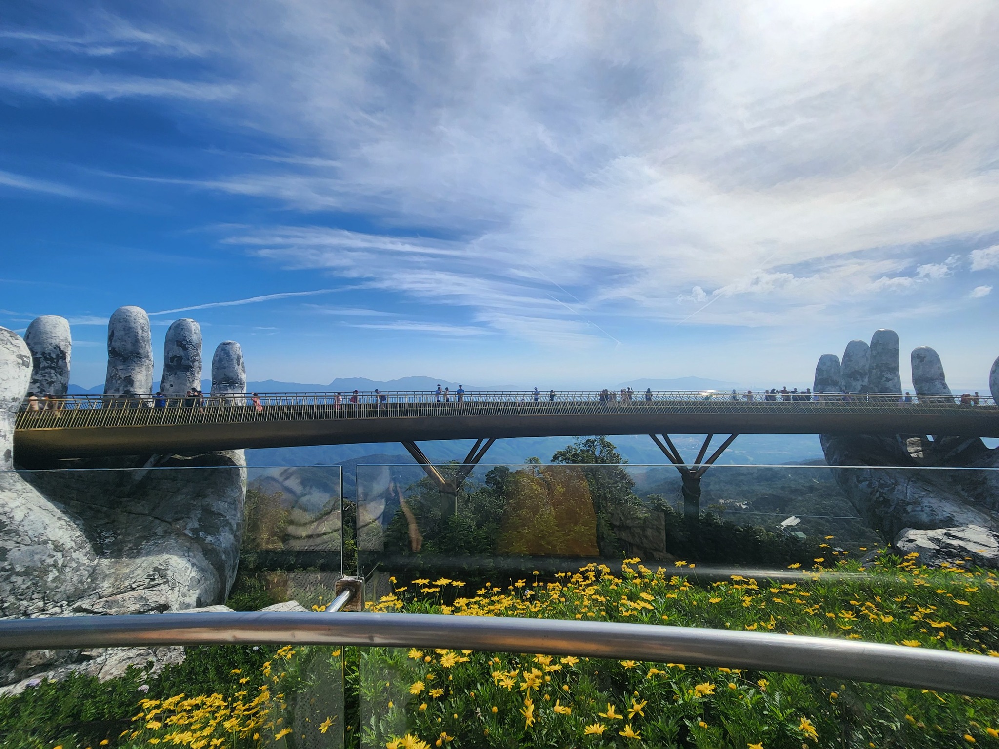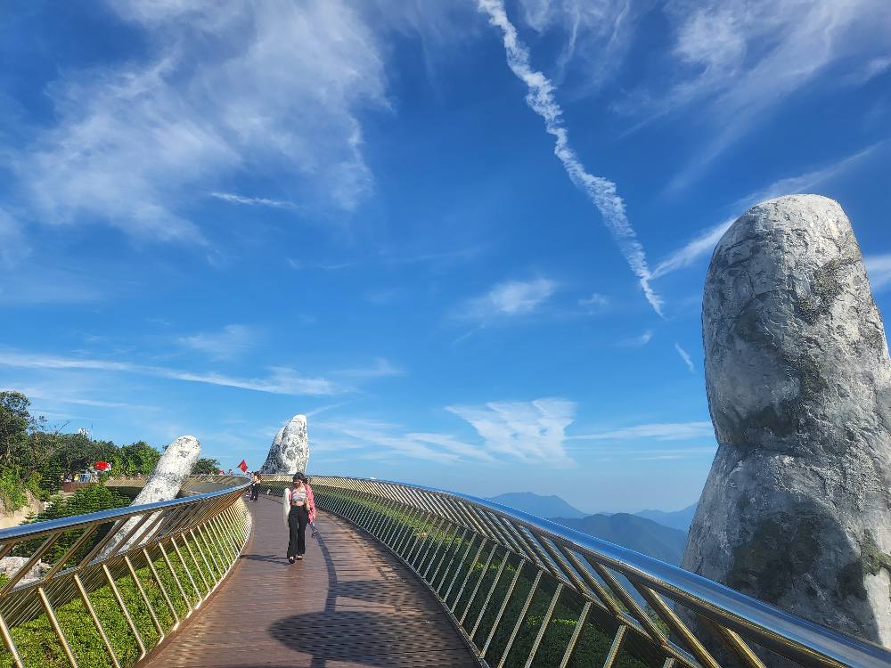 After finishing the first cable car, you will visit the Golden Bridge, Flower Garden, and Linh Ung pagoda.