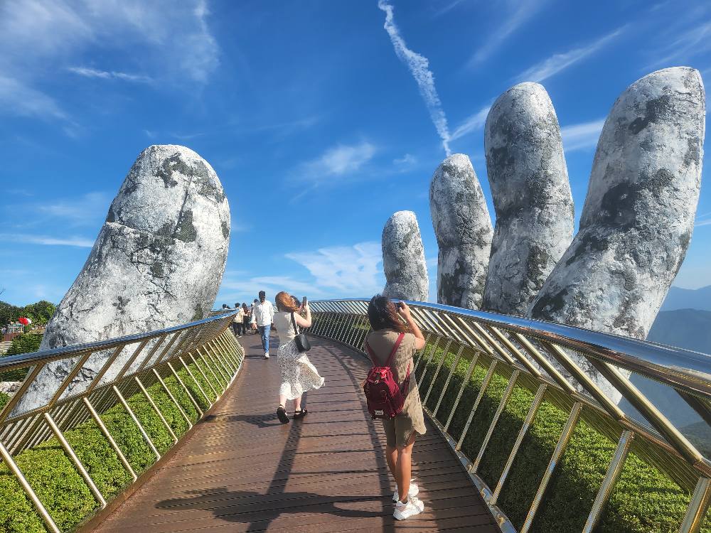 Then we take the Cable Car to Visit the famous Golden Bridge with Giant Hands, Flower Garden, Linh Ung Pagoda, Wine Making Cellar, French Village and you will be able to take lots of great photos .