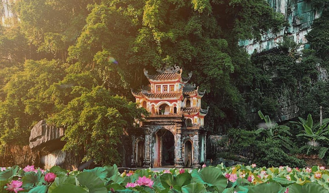 11:30 Cycling to Bich Dong pagoda;Bich Dong pagoda is complex of three pagoda, the Lower pagoda is located at the base, from which 100 steps lead to the Middle pagoda, where there’s a shorter but steep ascent to the Upper pagoda, inside each cave temple, looming statues peer from the haze of burning incens ride along country lane to enjoy beautiful scenery of limestone mountains, through small villages with backdrop of agricultural lifestyle.