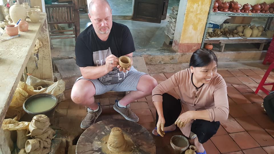 After That we bring you to Boat Station to get on local Boat to go to Thanh Ha- a pottery village. See how craftsmen making their products and enjoy the peace of the village. Next stop will be a rice paddy field to take photos with water Buffalo or you can ride on water Buffalo and learn how to keep balance on Water Buffalo.