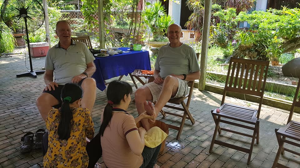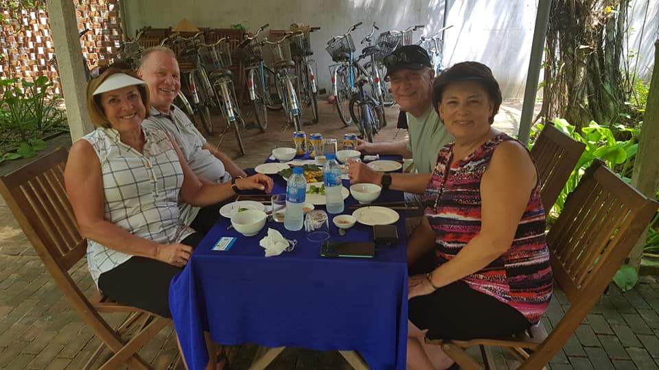 After that pay a visit to a local family house for lunch with local Authentic Food ( Rice Pancake, Spring Rolls, Steamed Shrimp & Pork, Mackerel Barbecued Fish, Morning Glory cooked with Garlic, Steamed rice, Seasonal Fruits ) . Then you will enjoy a traditional therapeutic foot bath with medicinal herbs and massage. Tour ends.